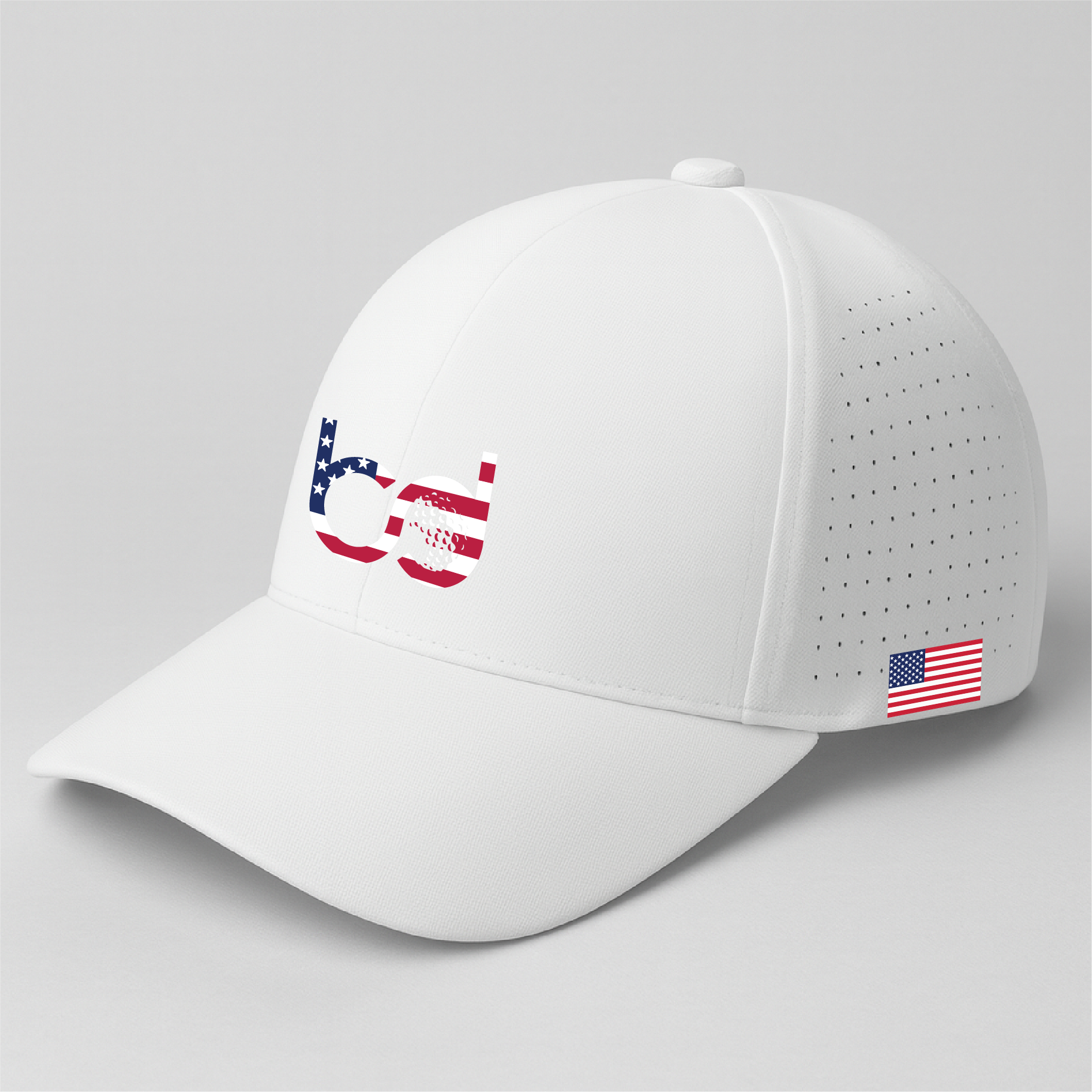 Official Bogey Daddy American Flag logo hat. Premium white snapback golf hat. One size fits most.
